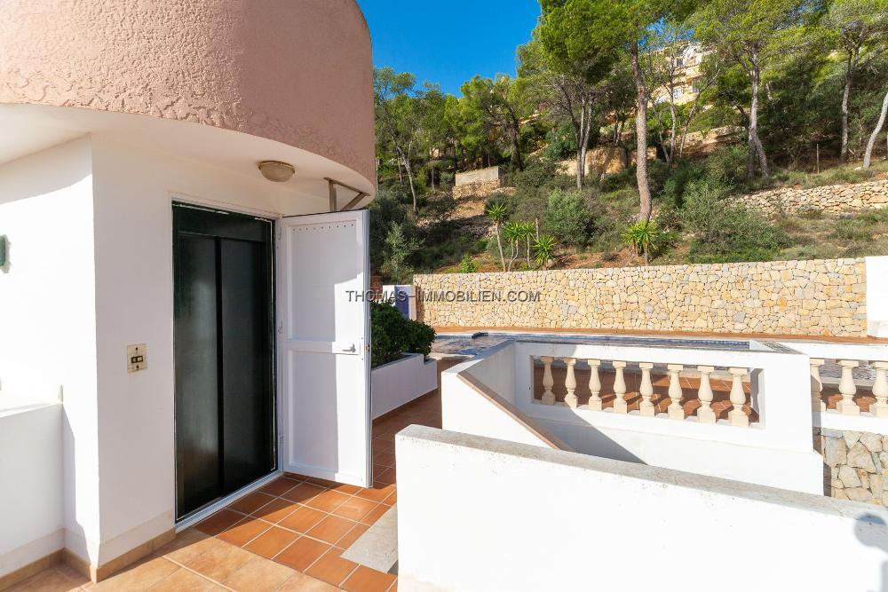 Im Inneren ist das Apartment mit Klimaanlagen in allen Räumen ausgestattet, die das ganze Jahr über Komfort bieten. Das Wohnzimmer verfügt über einen Kamin, der dem Raum eine gemütliche Note verleiht. Für zusätzlichen Komfort umfasst die Immobilie zwei Parkplätze und einen Abstellraum, die ausreichend Platz für Habseligkeiten bieten. Ein Aufzug ist vorhanden, der den einfachen Zugang zu allen Etagen ermöglicht.