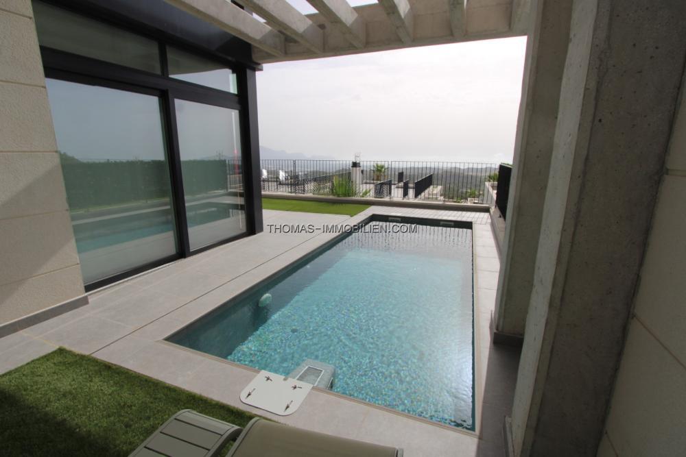 Neubau-Chalet neu fertiggestellt zu verkaufen in Polop. Diese Villa erstreckt sich über 3 Etagen und hat viel Potenzial durch ihre große Garage. Im Untergeschoss befindet sich die Garage mit Platz für mehrere Autos und der Technikraum (Poolpumpe, Waschmaschine usw.). Die erste Etage besteht aus einem Wohn-Esszimmer, einer offenen Küche, 2 Schlafzimmern mit Einbauschränken und einem Schlafzimmer mit Bad en suite. Die zweite Etage besteht aus einem Schlafzimmer mit Einbauschränken und einem Bad. Es gibt viele Extras wie zum Beispiel einen Pool mit automatischem Chlorinator, ein Gegenstromschwimmsystem und eine Abdeckung. Weitere Extras sind ein 3,5KW Solarsystem, Klimaanlage über Kanäle, TV/Sat, Doppelverglasung und elektrische Jalousien. Die Immobilie befindet sich ganz in der Nähe aller Dienstleistungen wie Supermärkte und Restaurants. Die nächstgelegenen Strände sind 20 Minuten entfernt. Das größte Einkaufszentrum der Gegend ist etwa 20 Minuten mit dem Auto entfernt, ebenso wie die Autobahn nach Valencia (über 1 Stunde) und Alicante (weniger als 1 Stunde).