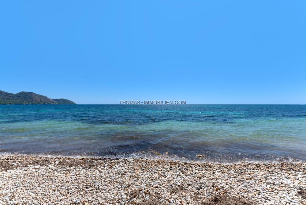Vom Hauptwohnraum aus öffnen sich große Glastüren direkt auf eine sonnenverwöhnte Terrasse, nur wenige Meter von der Küstenlinie entfernt. Ein kurzer Rasenabschnitt führt zu einem privaten Tor mit direktem Zugang zum Meer, was dies zum ultimativen Ort für ein Leben am Wasser macht.