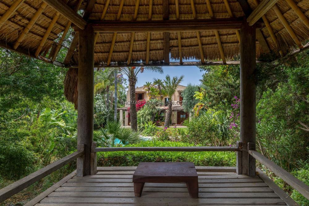 Der gepflegte Garten bietet viel Schatten und Privatsphäre, mit großen Bäumen und mediterranen Pflanzen, die eine friedliche, private Oase schaffen.